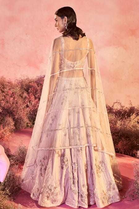 Pink Net, Crepe Sequins, Beads, Minar Geometric Embellished Bridal Lehenga Set