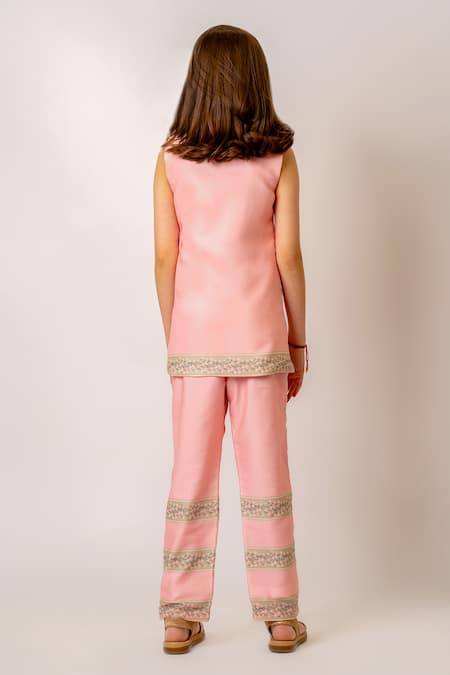 Buy_Pasha India_Pink Cotton, Rayon Embroidery Cherry Blossom Stripe Art Print Blazer With Pant _Online_at_Aza_Fashions