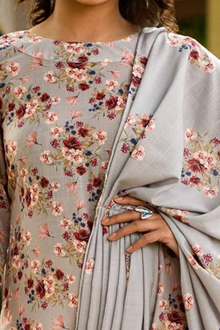 Buy_Pasha India_Green Linen Floral Print Round Jumpsuit With Drape _at_Aza_Fashions