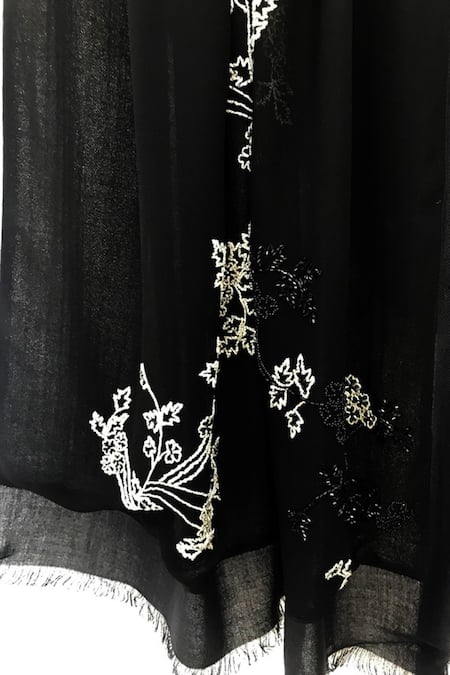 Buy_Pashma_Black Floral Motifs And Beads Embroidered Scarf _at_Aza_Fashions
