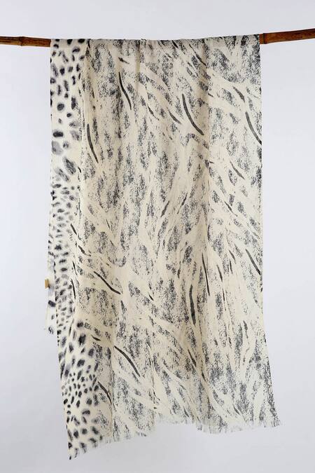 Off-white & black scarf featuring all-over animal print and a frayed border