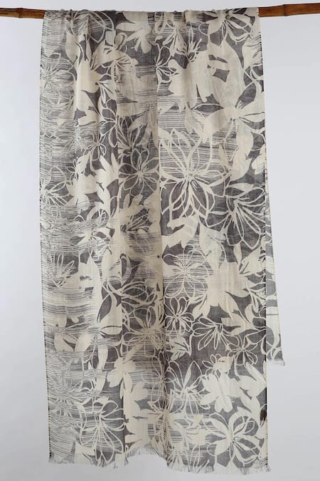 Floral printed scarf made from silk cashmere featuring a frayed border