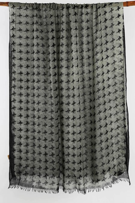 Buy_Pashma_Black Printed Silk Cashmere Houndstooth Scarf _Online_at_Aza_Fashions