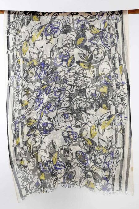 White & black scarf made from silk cashmere featuring all-over printed motifs