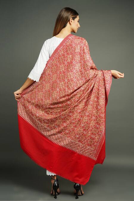 Buy_Dusala_Red Pashmina Embroidered Shawl_Online_at_Aza_Fashions