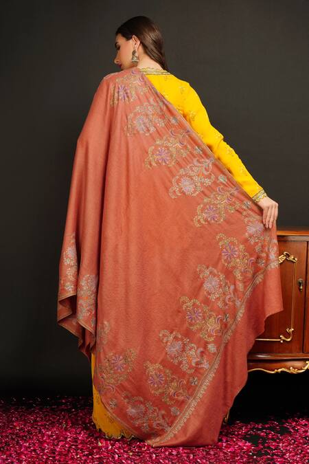Orange Embroidered Pashmina Handwoven Phulkari Shawl