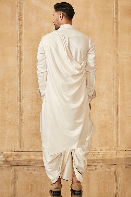 Tarun Tahiliani_Off White Pathani Kurta And Dhoti Set _Online_at_Aza_Fashions