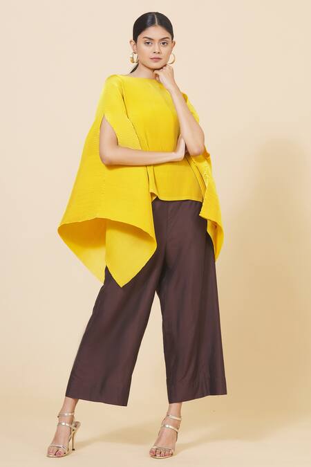 Brown Poly Acrylic Flared Pant