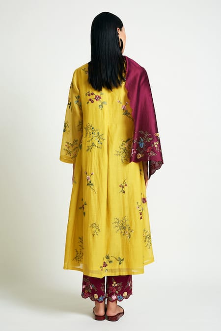 Scallop hemline, Floral placement embroidery, Chanderi cotton silk fabric