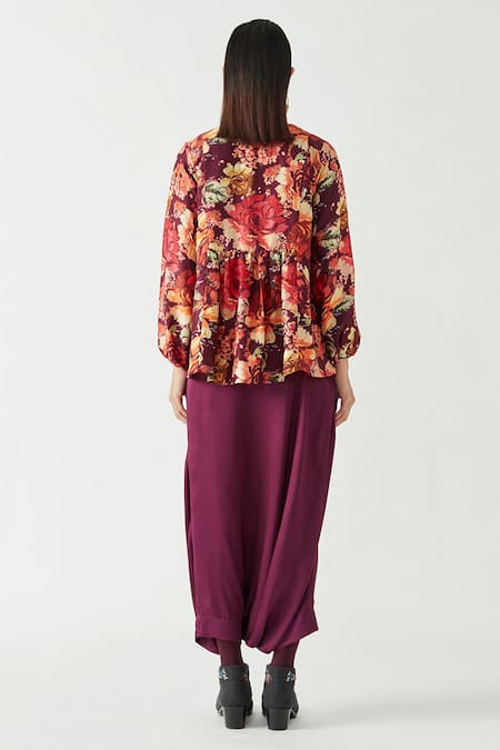 Multicolor top with all-over floral printed motifs and bead embellishment.