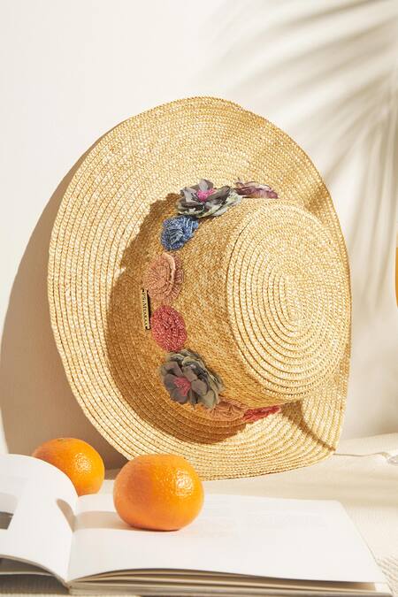 Embroidered flowers in pastel shades adorn the hat, Includes a thank you card and gift box