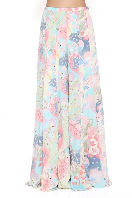 Pink Georgette Embroidered Floral High Neck Euphoria Print Sharara And Blouse Set