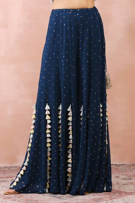Back tassel tie-up detailing, Tassel palazzo, Zari and thread floral embroidery