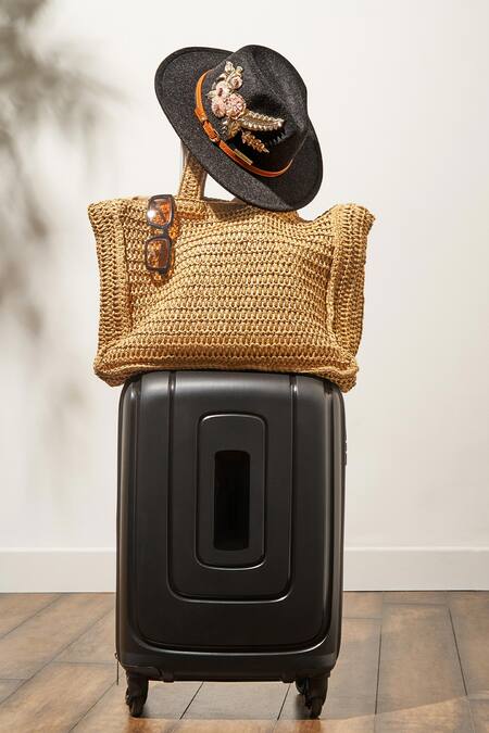 Black Panama hat featuring floral embroidery with pearls, thread, and beads. Includes a leather belt detailing and comes with a thank you card and gift box.