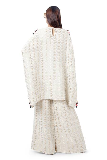 Buy_Payal Singhal_White Brocade Thread Round Hafsa Kaftan With Palazzo Pant_at_Aza_Fashions