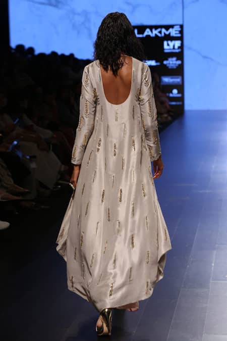 Grey Silk Embroidery Gota Patti And Beads Round Iran Tunic & Palazzo Set