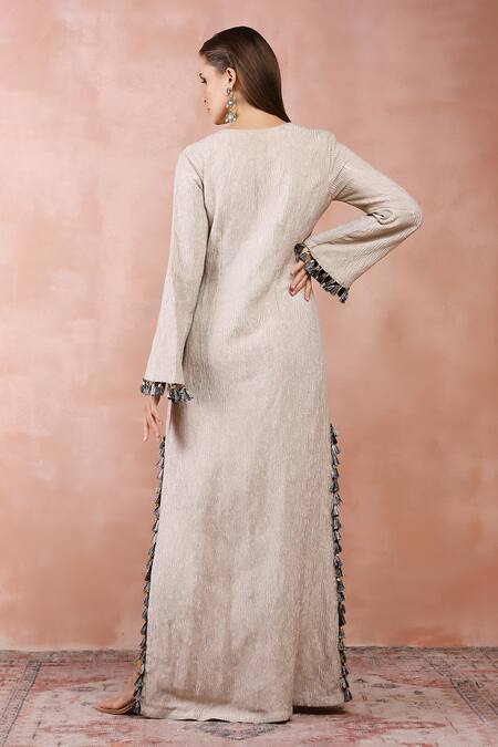Gold Crushed Tissue Embroidery Mirror Notched Kaftan