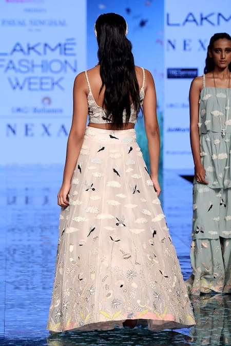 Pink Organza Thread Round Nesma Embroidered Lehenga Set