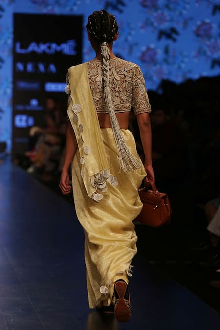 Yellow Chanderi Embroidery Thread Round Zarya Saree With Blouse