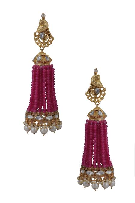 Pink Peacock Motif Glass Bead Embellished Jhumkas