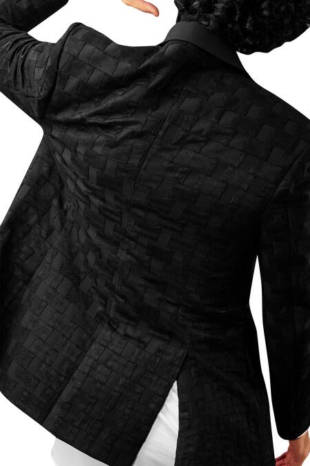 Black Matka Silk Embroidered Peak Lapel Suit With Shirt