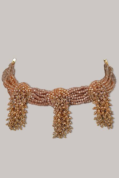 Buy_House Of D"Oro_Brown Pearls Handcrafted Choker Set_at_Aza_Fashions