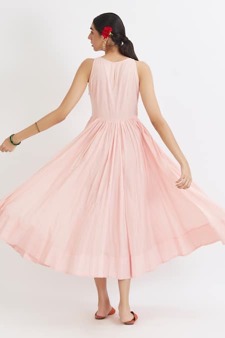 Pink Rose Cotton Embroidery Round Anarkali With Hand Dupatta