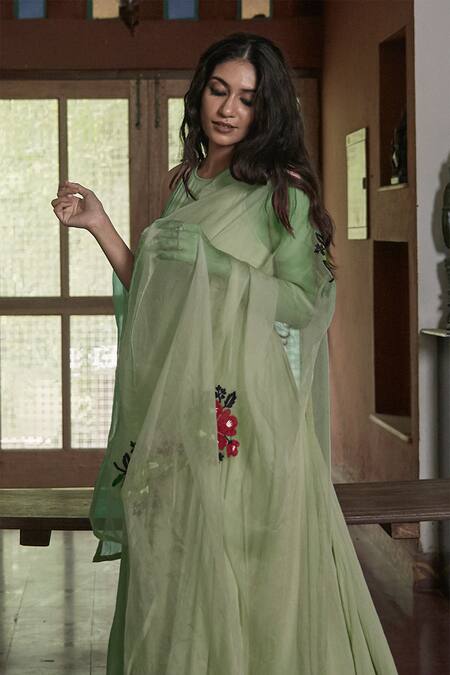 Green Rose Fibre Cotton Dupatta Silk Organza Round Dyed Anarkali With