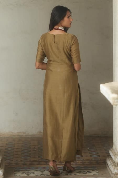 Buy_Peeli Dori_Gold Silk Chanderi Hand Round Straight Kurta And Pant Set _Online_at_Aza_Fashions