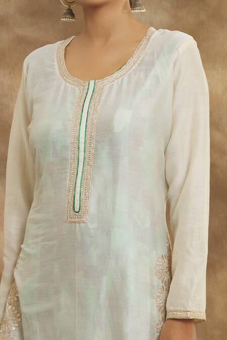 Cream Chanderi Gota Patti, Embroidery Round Neck Kurta With Long Inner