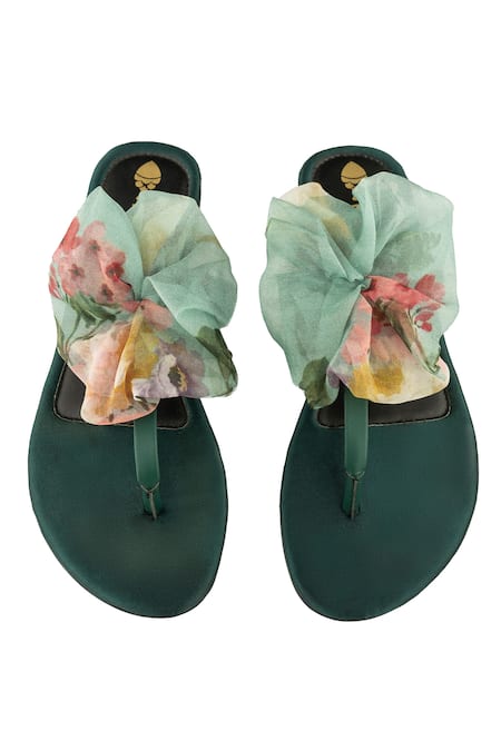 3D floral motif embellishment on the strap, Lightweight design with minimal heel