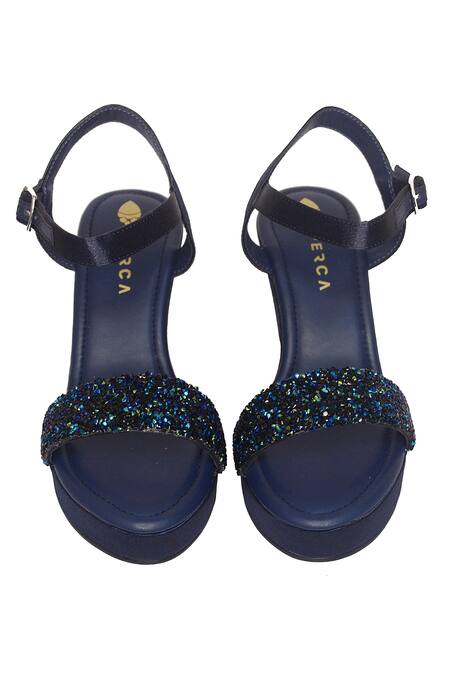 Blue Crystals Embellished Platform Wedges