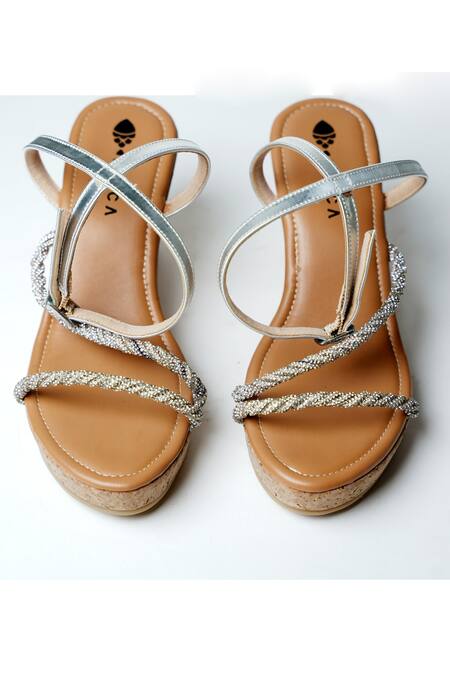 Buy_Perca_Silver Diamonds Embellished Wedges_at_Aza_Fashions