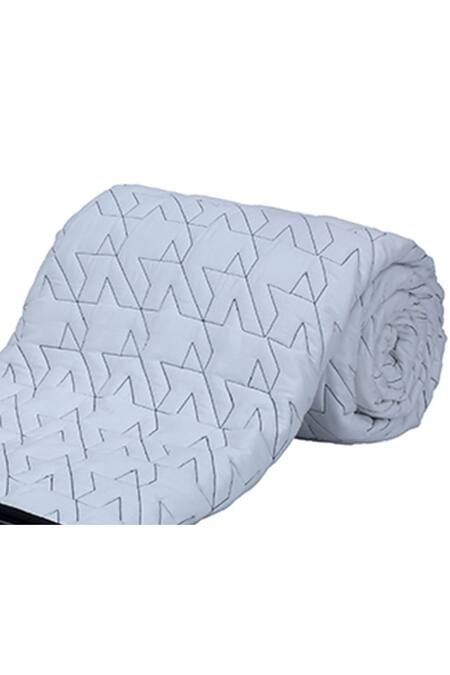 Off white quilt with geometric interconnected embroidered motifs & piping border.