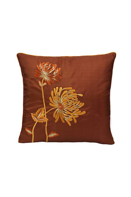 Chocolate brown square cushion cover with floral embroidered motifs. Comes with filler.