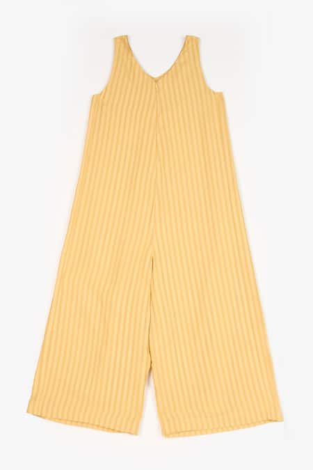 Yellow Cotton Stripe Round Neck Melanie Pattern Jumpsuit