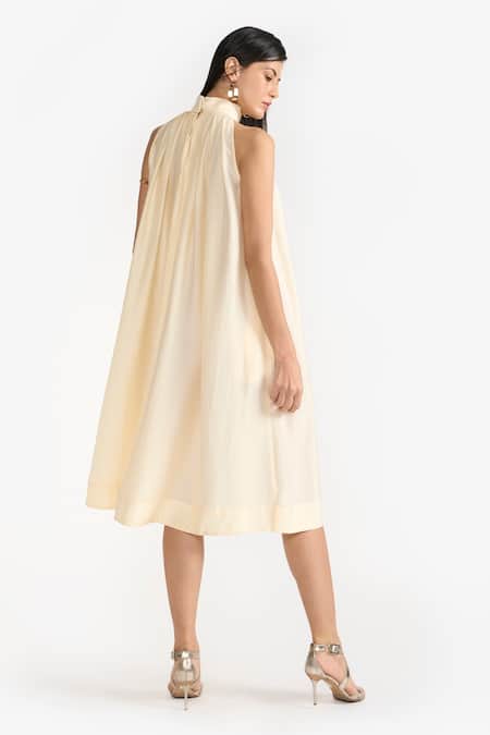 Yellow Cotton Plain Halter Neck Scarlett Draped Fluid Dress