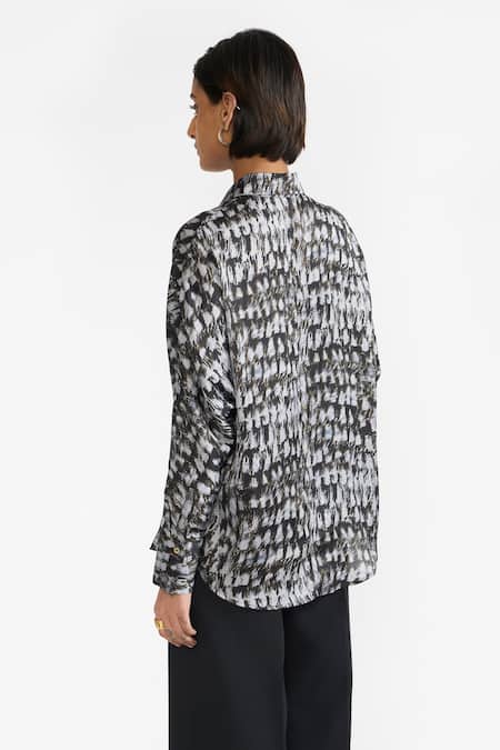 Black and grey shirt featuring all-over abstract prints and a concealed placket