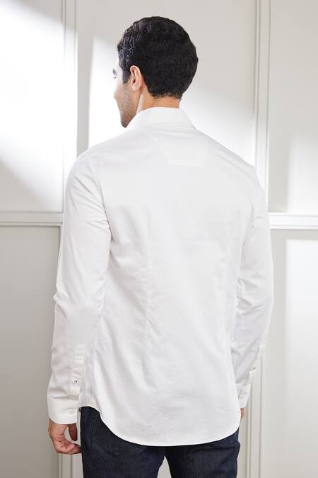 White shirt featuring full sleeves and a collared neck design