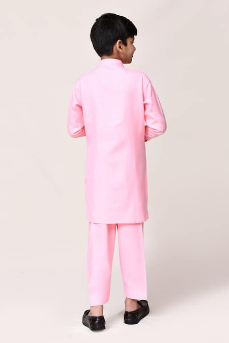 Buy_Petite Pomme_Pink Linen Plain Kurta And Pant Set _at_Aza_Fashions