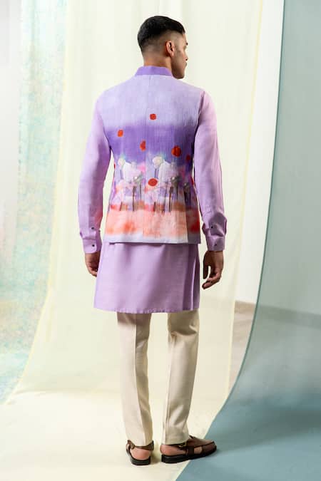 Purple Linen Lavender Ombre Printed Bundi