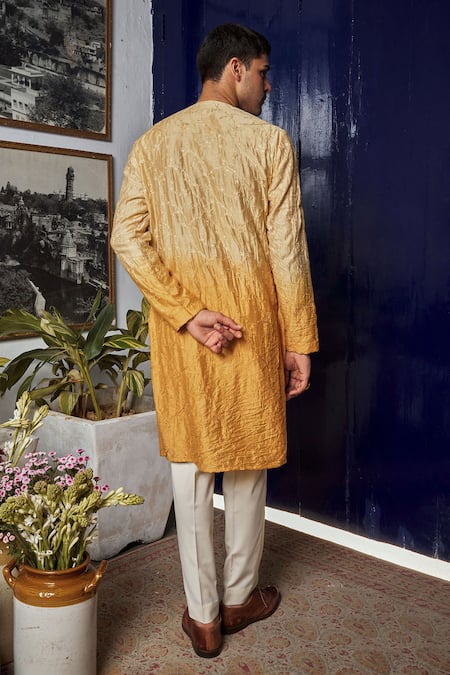 Yellow Chanderi Embroidery Floral Motif Kurta