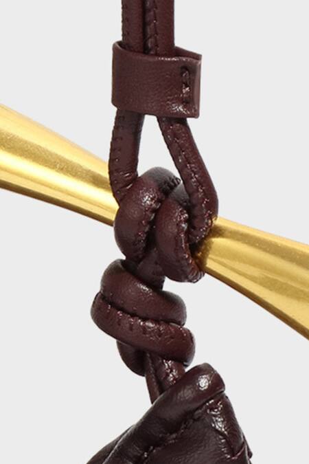 Brown handbag crafted from pure leather featuring an intricate checkered woven pattern