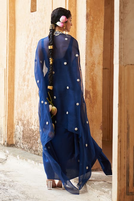 Blue Silk Embroidery Square Neck Neelkamal Cape Set