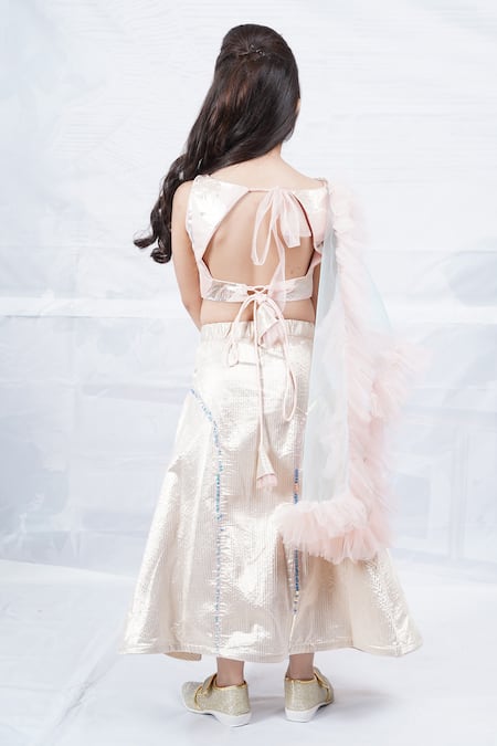 Gold Brocade, Tulle, Cotton Sequins, Doll Wear Out Embellished Choli Set