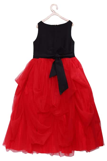 Red Cotton, Silk Fabric Flowers, Sequins Embellished Gown