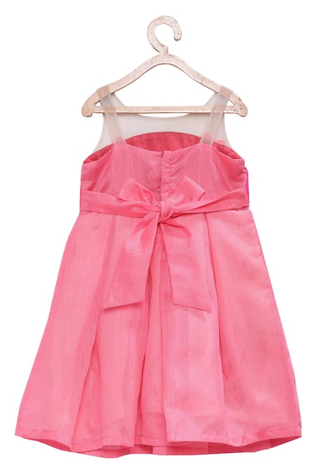 Buy_Pinkcow designs pvt ltd_Pink Silk Fabric Flowers Flared Dress _at_Aza_Fashions