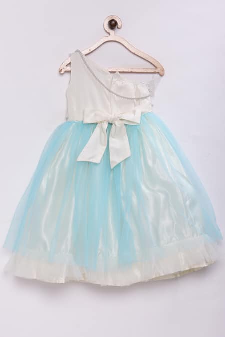 Blue Satin, Net Embroidery One Shoulder Gown
