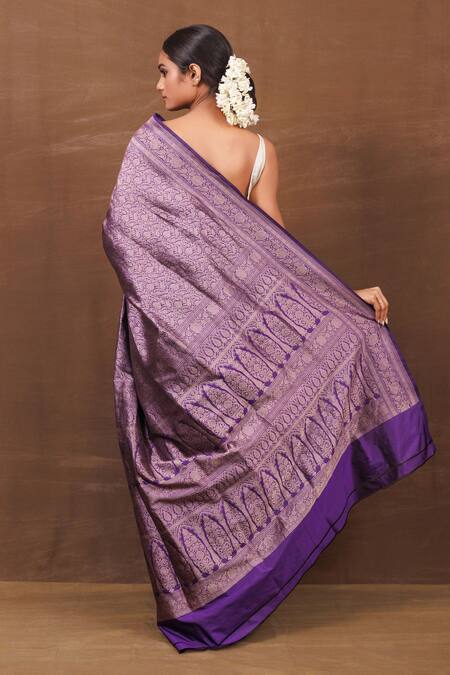 Buy_Vishwa By Pinki Sinha_Purple Silk Mughal Bahar Handwoven Pure Banarasi Saree_Online_at_Aza_Fashions