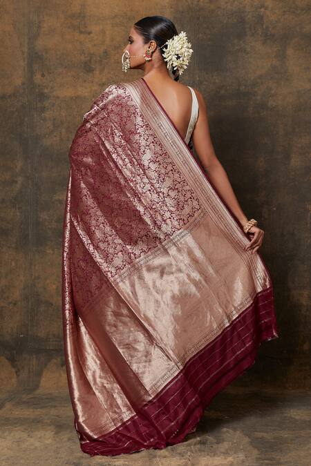 Buy_Vishwa By Pinki Sinha_Wine Silk Embroidery Shikargarh Jaal Woven Saree With Running Blouse_Online_at_Aza_Fashions